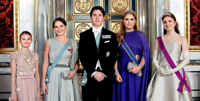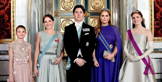 Одетые в роскошные наряды, будущие королевы: принцесса Швеции Эстель, 11 лет, принцесса Норвегии Ингрид-Александра, 19 лет, принцесса Нидерландов Катарина-Амалия , 19 лет, и принцесса Бельгии Элизабет, 21 год, улыбались в камеру рядом с Кристианом.