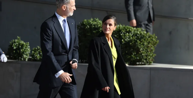 Королева Испании Летиция продемонстрировала осенний деловой образ с ярким элементом. Об этом пишет Daily Mail.