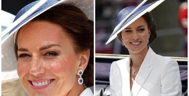 Принцесса Кейт всегда делает акцент на естественной красоте, поэтому она пользуется росистым тональным кремом, делает акцент на густые брови и свои естественно розовые щечки.