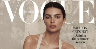 На обложке Vogue Австралия Ратаковски предстала в бежевом топе и с меховой накидкой. Ее волосы были собраны в аккуратную прическу, а на лице визажисты сделали легкий макияж с акцентом на глаза. Она смотрела прямо в объектив камеры.