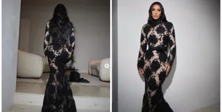 Ким Кардашьян появилась на публике в прозрачном платье с огромными черными цветами