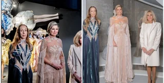 После открытия выставки королева Максима в присутствии первой леди Франции Брижит Макрон прогулялась по залу.