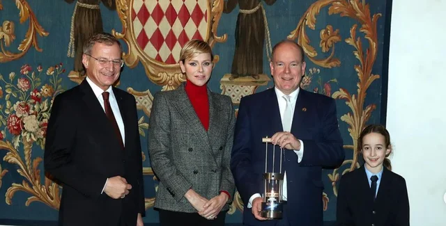 Князь Альбер II и его жена встретили огонь из Вифлеема перед Рождеством 2023 года.