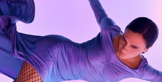 Для фотосессии бизнес-леди выбрала лавандовый наряд своего бренда и сделала макияж с помощью косметики "Victoria Beckham Beauty".