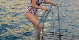 Раздевшись до купальника с леопардовым принтом, Хелена продемонстрировала свою подтянутую фигуру и прыгнула в ледяную воду.