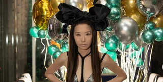 Культовая модельер поразила блестящим платьем собственного бренда с верхом в пайетках, который подчеркивал подтянутые руки Вонг.
