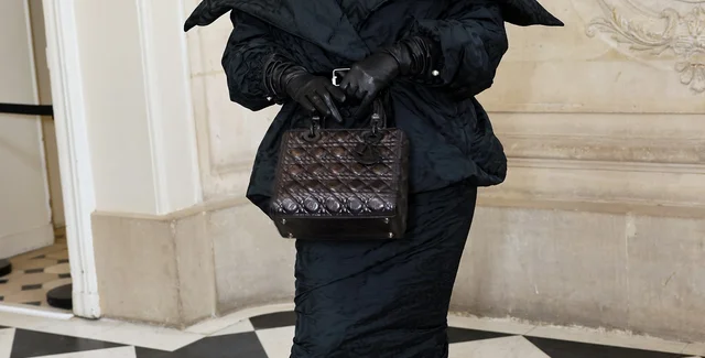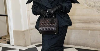 Также на показе присутствовала актриса Гленн Клоуз, которая добавила в свой образ красок, выбрав расшитую пайетками сумочку Dior.