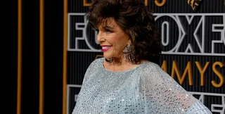 Для мероприятия Джоан выбрала гладкий ярко-розовый жакет с элегантным платьем с черно-розовым цветочным узором прямо из эпохи "Династии", сериала, который прославил актрису на десятилетия.