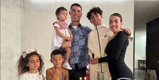 Именинник традиционно позировал в Gucci, окруженный четырьмя наследниками — Беллой Эсмеральдой, Криштиану-младшим, Матео и Аланой Мартиной. К ним также присоединилась испанская модель Джорджина Родригес.