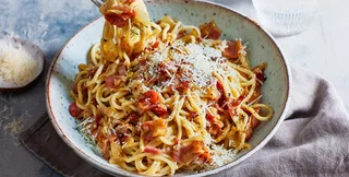 Рецепт пасты карбонара якобы был придуман итальянскими горняками, которые добывали уголь (их называли carbonario). В шахту они брали продукты, которые долго не портились: пасту, сыровяленую ветчину, твердый сыр и яйца. Легендарное блюдо в итоге стало популярно и за границами Италии. Готовят сейчас спагетти карборнара по всему миру. Самым простым рецептом поделились на сайте Damn Delicious.