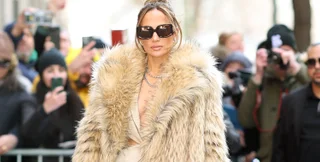 Знаменитость сочетала изысканный аксессуар с брюками, блузкой и пышной меховой шубой, покидая студию в Нью-Йорке после появления на The View.