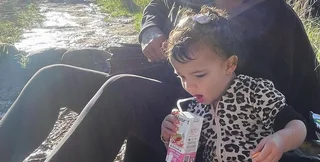 На снимках двухлетняя Малти Мэри в леопардовой кофточке пила сок и наслаждалась природой с близкими людьми.