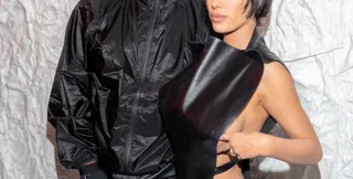 Приехав вместе с мужем на показ, девушка щеголяла в кожаном боди, больше похожим на два треугольника, скрепленных на плечах. Его Бьяка надела на полностью голое тело и во время показа она практически боялась лишний раз пошевелиться, чтобы грудь предательски не выскользнула из-под так называемой одежды. Когда же она шла, боди едва прикрывало ее интимные места.
