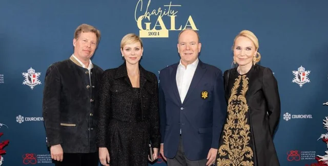 Супруга князя Альбера II выбрала блестящий брючный костюм для появления на благотворительном вечере Фонда княгини Монако Шарлен и детей спортивного клуба "Куршевель".