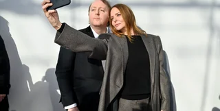 Джеймс Маккартни сидел в первом ряду, чтобы увидеть новую коллекцию своей знаменитой сестры Стеллы. 46-летний Джеймс выглядел щеголевато в белоснежной рубашке и черном пиджаке с геометрическим принтом, который он сочетал с облегающими серыми брюками.