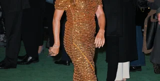 На мероприятии 72-летняя Джейн, ошеломила всех золотым облегающим платьем средней длины Bardot, которое подчеркивало ее невероятную фигуру. Платье было расшито золотыми пайетками и украшено декоративными складками на талии. Свой вечерний ансамбль она завершила парой блестящих золотых заостренных туфель на шпильке, которые идеально дополняли платье.