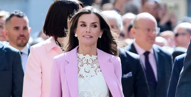 Королева Летиция вышла в свет в очаровательном розовом костюме