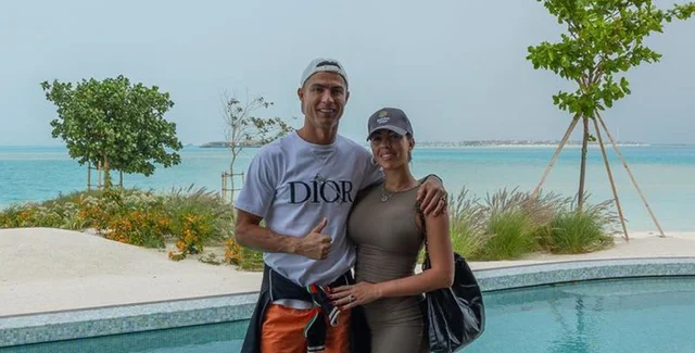 На фото многодетный отец и его возлюбленная предстали на фоне бассейна и моря. Судя по всему, они отдыхают в Саудовской Аравии, где пара последние месяцы живет вместе с детьми после подписания Роналду контракта с ФК "Аль-Насср".
