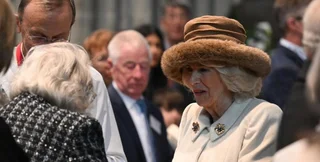 Королева также продемонстрировала коричневую меховую шляпу, которая сочеталась с ее замшевыми ботинками и сумкой. Жена Чарльза III согревалась в черных кожаных перчатках и была с большими бриллиантовыми серьгами.