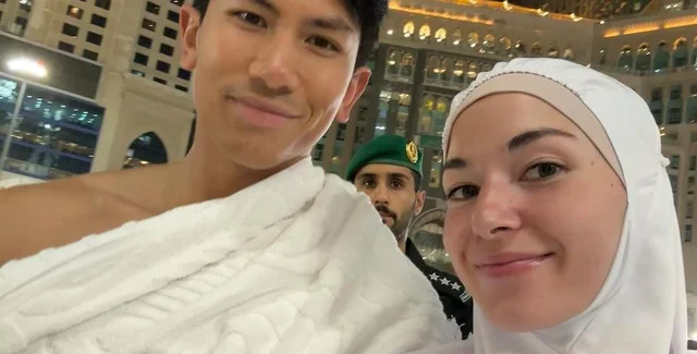 Абдул Матин и Аниша поженились на роскошной 10-дневной свадьбе в январе этого года, но в Мекке они позировали в белых одеждах, известных как одежда Ихрама.
