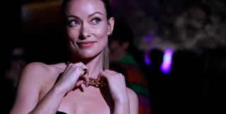 Знаменитость надела эффектные золотые украшения Tiffany & Co: очень массивное ожерелье, сделанное в виде звеньев цепи, несколько колец и браслет. Свой образ Оливия завершила стильным черным клатчем. На лицо Уайлд нанесла легкий макияж, подчеркнув большие серые глаза, и накрасила губы светло-розовой помадой. Шикарные длинные волосы актриса завязала в тугой высокий хвост.