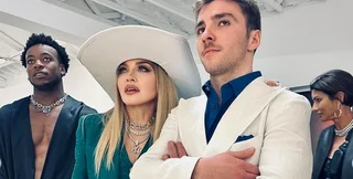 Гордая мать сияла на художественной выставке картин 23-летнего Рокко.​Его последняя коллекция под названием "Pack A Punch" вдохновленна бойцами тайского бокса. Одетая в эффектный изумрудно-зеленый костюм, дополненный белой ковбойской шляпой и прозрачными перчатками, Мадонна была воплощением стиля, рассматривая полотна.
