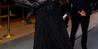 Грэм на шоу пришла в сопровождении своего 35-летнего мужа Джастина Эрвина. 36-летняя супермодель выглядела гламурно в черном кружевном платье миди с прозрачным корсетным верхом и юбкой А-силуэта, которое выгодно подчеркнуло ее пышные формы.