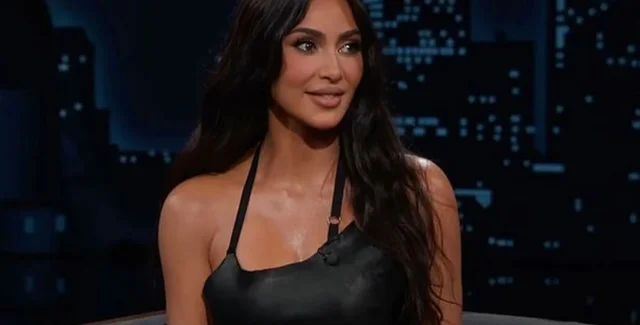 На шоу знаменитость выглядела потрясающе в черном топе на тонких бретелях и кожаных штанах. Ким нанесла вечерний макияж, подчеркнув черные глаза подводкой и тушью. На скулы она нанесла хайлайтер, а губы накрасила нюдовой помадой.