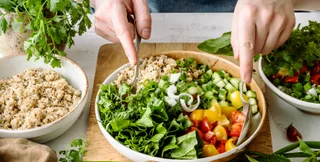 В глубокой миске смешать все ингредиенты, слегка посолить и заправить растительным маслом.