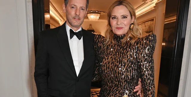 Кэтролл продемонстрировала свое изысканное чувство стиля в светло-сером элегантном блейзере и брюках кремового оттенка. Исполнительница роли Саманты Джонс надела нежно-голубую блузку, украшенную гофрированным декольте.