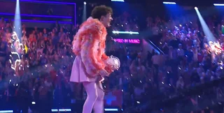 Небинарный певец из Швейцарии так бурно праздновал победу, что расколол хрустальный микрофон. Это случилось во время повторного выступления.