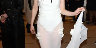 28-летняя кинозвезда, выходя из отеля Marriott в Каннах, продемонстрировала невероятную фигуру в длинном белом платье из недавней свадебной коллекции Симона Порте Жакмюса "Le Mariage". Платье представляло собой белое боди-бандо без бретелек, покрытое прозрачным шифоном, украшенное цветочными аппликациями и эффектным шлейфом. Свой образ Тейлор-Джой дополнила парой белых босоножек на шнуровке с ремешками и большой соломенной шляпой от солнца, повязанной на шее черной лентой.