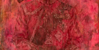 Автор картины – известный художник-портретист Джонатан Йео. На картине, нарисованной маслом он изображен на фоне пестрых красных, розовых и фуксиевых оттенков.