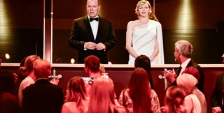 Монаршая чета посетила церемонию закрытия телевизионного фестиваля. Шарлен выбрала для выхода наряд от ливанского дизайнера.