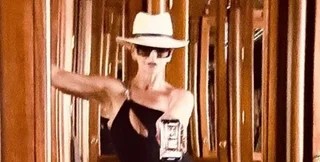 Кэтрин также носила соломенную шляпу и пару массивных солнцезащитных очков, когда она позировала для селфи в зеркале.