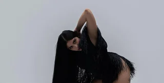 На другом фото изображена Лурдес в черном платье с обнаженной спиной, которая обхватила себя руками.