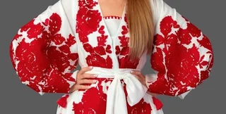Белое платье ниже скул с широкими рукавами и свободной юбкой вышито массивными красными цветами. Дополнила образ Юлия Тимошенко белыми туфлями с открытым носком. Что касается прически, то политический деятель выбрала забыть о фирменной косе и оставить волосы распущенными, которому сделали плавные локоны.