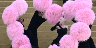 38-летняя поп-звезда в экстравагантном наряде, в окружении нескольких танцоров и множества разноцветных перьев провела репетицию предстоящего выступления. Гага пела и танцевала на винтажной лестнице, а в какой-то момент танцор даже поднял ее высоко в воздух.