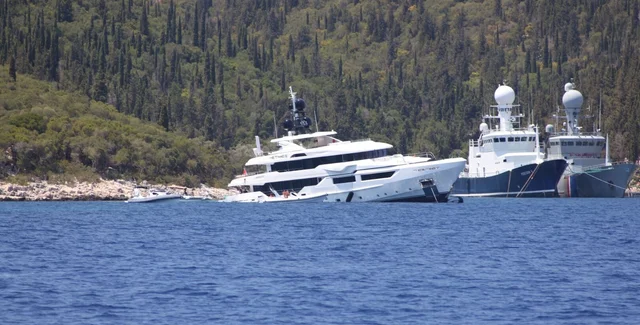 Кадры, облетевшие сеть, показывают, как судно теряет равновесие в синих водах вокруг Кефалонии, популярного острова в Ионическом море, известного как место действия "Мандолина капитана Корелли". Видно, как волны бьют о корму яхты, которая дрейфовала на некотором расстоянии от береговой линии.
