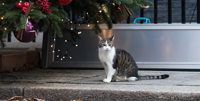 Кот Ларри, самый известный обитатель резиденции британских премьер-министров на Даунинг-стрит, готовится встретить свое 17-е Рождество. По этому случаю Ларри вышел на улицу и позировал для фанатов и фотографов у рождественской елки.
