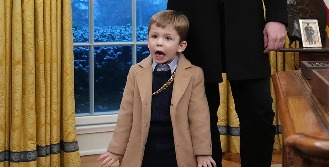 Сам Илон Маск появился в Овальном кабинете в черном пальто и кепке с надписью "сделаем Америку снова великой" – предвыборным лозунгом Дональда Трампа. Но наряд его сына привлек особое внимание: на нем было светлое пальто, жилет и очень толстая золотая цепь. Неясно, было ли это украшение, или у цепи было иное предназначение.
