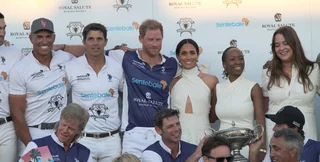 Принц Гарри, Меган Маркл и Софи Чандаука на Royal Salute Polo Challenge | Фото: Getty