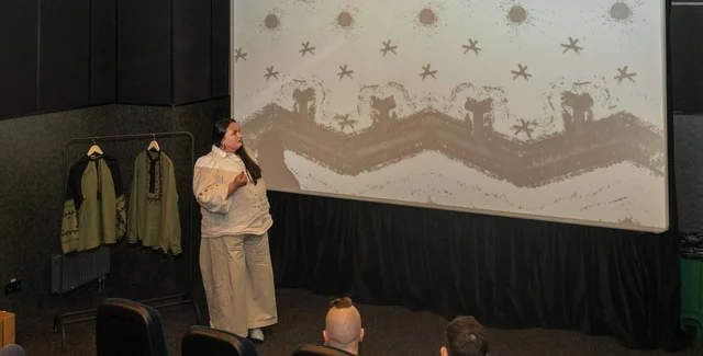 "Окопы действительно оберегают наших военных, пока те защищают украинцев. Это взаимная защита — земля и люди, и именно эта идея стала сердцем нашего визуального образа", — пояснил поделился ее автор и дизайнер медиацентра Ярослав Копаница.