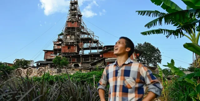 Креативный домовладелец превратил свой скромный дом в высокую пирамиду после того, как его деревня была сравнена с землей, чтобы создать дорогой курорт.