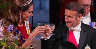 Фотографии со званого ужина также стали предметом обсуждений. На снимках запечатлено, как Макрон подмигивает принцессе Кейт, которая в этот момент искренне смеется.
