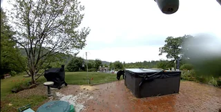 Когда раздался звонок, зверь отступил и на мгновение остановился, а затем вернулся, чтобы продолжить исследование патио. Заметив джакузи, он положил лапы на крышку, тыкая в нее носом. Когда крышка не поддалась, великан сдался и пошел глубже во двор.