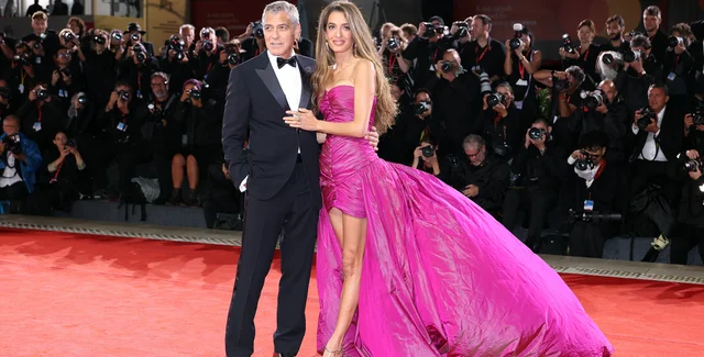 Амаль Клуни продемонстрировала ретро-стиль на Венецианском кинофестивале-2025, надев яркое мини-платье цвета фуксии с эффектным шлейфом.