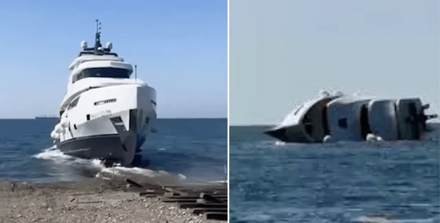 Первый рейс закончился катастрофой: роскошная яхта пошла ко дну после выхода в море (видео)