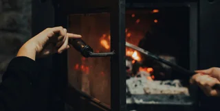 Еще один секрет — использование баллончика для розжига: им она поджигает дрова через отверстия в дверце печи.