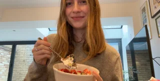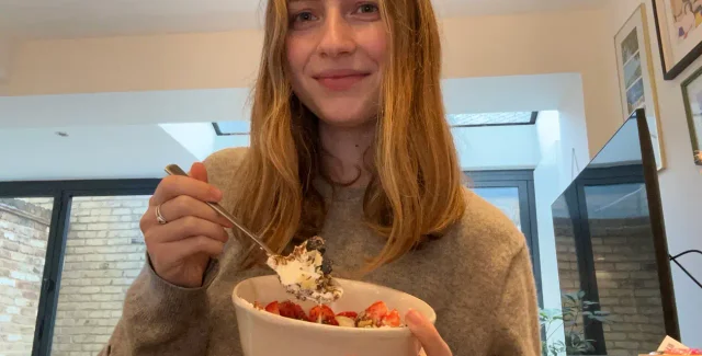 Журналистка Ким Шевитц призналась, что уже около года каждое утро ест один и тот же завтрак — высокобелковую и высококлеточную йогуртовую миску, которая помогает ей легко поддерживать ежедневные нормы питательных веществ. По её словам, этот вариант не требует подготовки, имеет хороший вкус и идеально вписывается в горячий рабочий график.